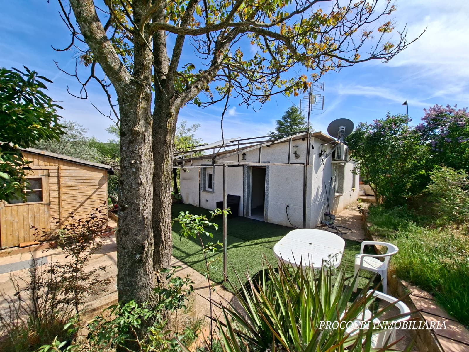 En el exterior, la propiedad ofrece un porche que da servicio a la vivienda principal, perfecto para disfrutar del entorno. Además, cuenta con una caseta independiente estilo cabaña, con su propio cuadro eléctrico, ideal para destinarla a taller, casa de invitados, estudio o espacio de ocio.